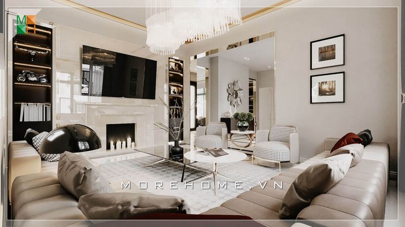 Nội thất phòng khách chung cư tân cổ điển, sang trọng mà tinh tế