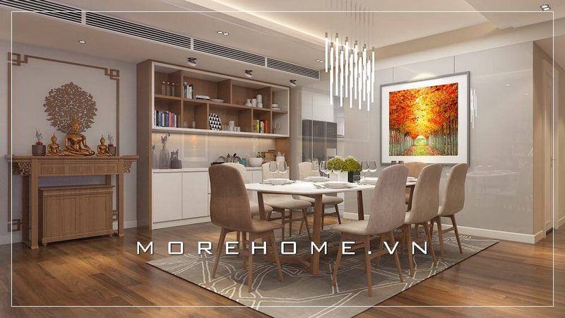 Mẫu thiết kế bàn thờ gỗ tự nhiên được ưa chuộng nhất hiện nay để trang trí phòng khách chung cư.
