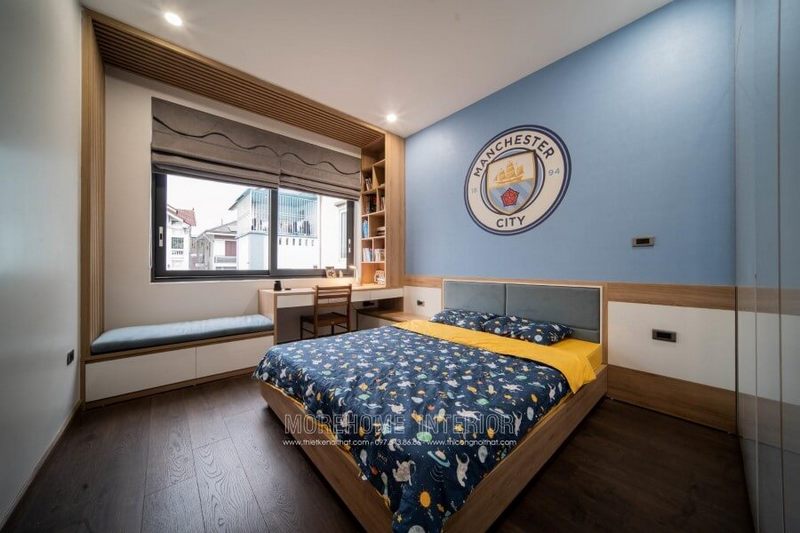Thi công nội thất phòng ngủ có bàn học hiện đại không gian sắp xếp khoa học, tiện nghi, thoải mái cho sử dụng hằng ngày.